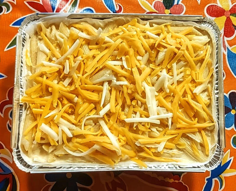 Our famously creamy sauce and cheddar cheese make this extra good. Made with Italian DeCecco penne pasta, milk, sour cream & two types of cheddar cheese seasoned with garlic & our own special seasoning. This is GREAT Mac & Cheese.