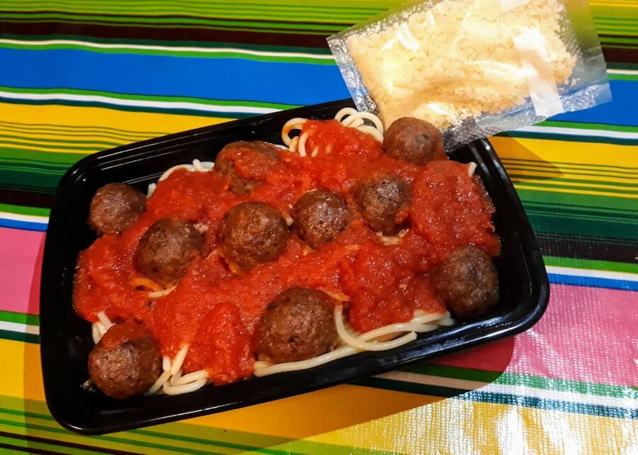 Fat Nonna-style Polpette made with pork, beef, Parmigiano-Reggiano cheese, herbs & sourdough breadcrumbs to add to the separate packet of red sauce made with San Marzano tomatoes grown on the slopes of Mt. Vesuvius. Every component, including the Parmigiana cheese, comes in its own packet. This way, you can enjoy true, freshly made pasta at home.