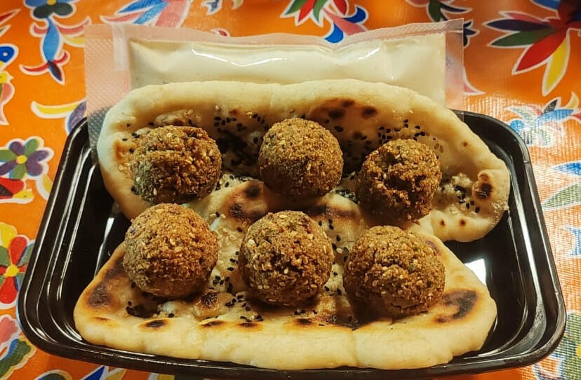 $400 5-6 servingsLebanese Style Falafel Kit, our wonderful crunchy falafel balls, ready to heat and stuff into the warm, fluffy, soft pita breads then drizzled with the enclosed packet of lemony, garlicky, tahini sauce. Add your own fresh lettuce, onions & tomatoes & you have the perfect street side Falafel Wraps.