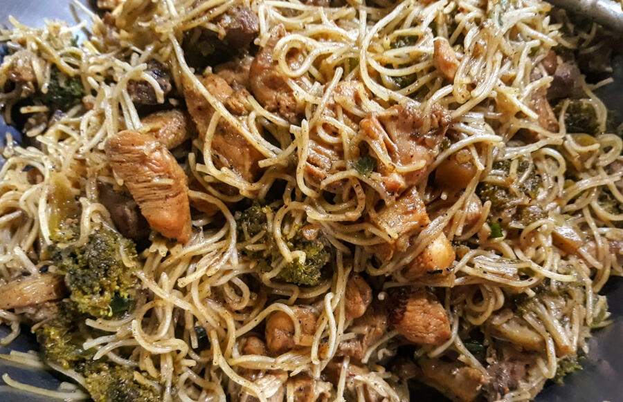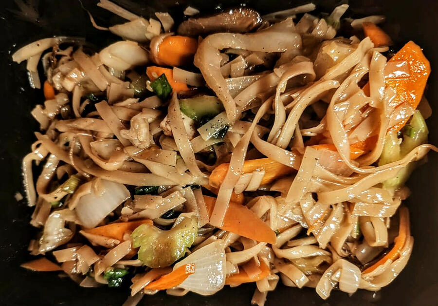 *Chinese Noodles, tofu, cabbage, carrots, scallions, onions, celery, mushrooms, jicama, oyster sauce, soy sauce, hoisin sauce fermented black beans, chile, garlic, sugar, sesame oil, chile, white pepper, cornstarch