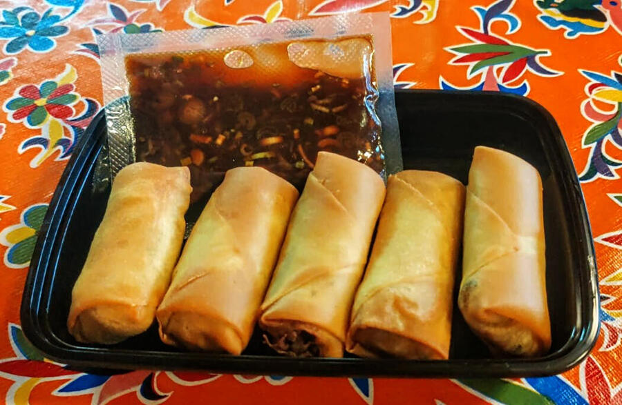 Our Dragon Gate style crispy Spring Rolls have impossibly thin, crunchy wrappers that shatter in each bite. Inside they are packed with home grown bean sprouts, "char siu" style marinated tofu strips, mixed vegetables & black mushrooms in a savory sauce. They come with a separate sauce packet of our lightly spicy, sweet & sour Secret Sauce.